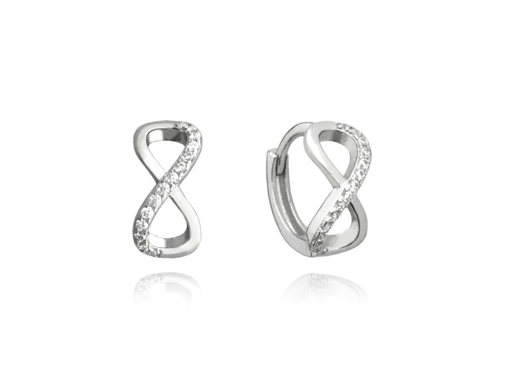 Stříbrné náušnice MINET se symboly nekonečna jsou odrazem současných trendů. Zajímavě posazené kamínky z nich udělají originální doplněk pro každodenní nošení.