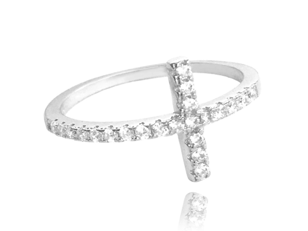 Prstýnkem se zirkony ve tvaru křížku dáte najevo, že módě rozumíte.