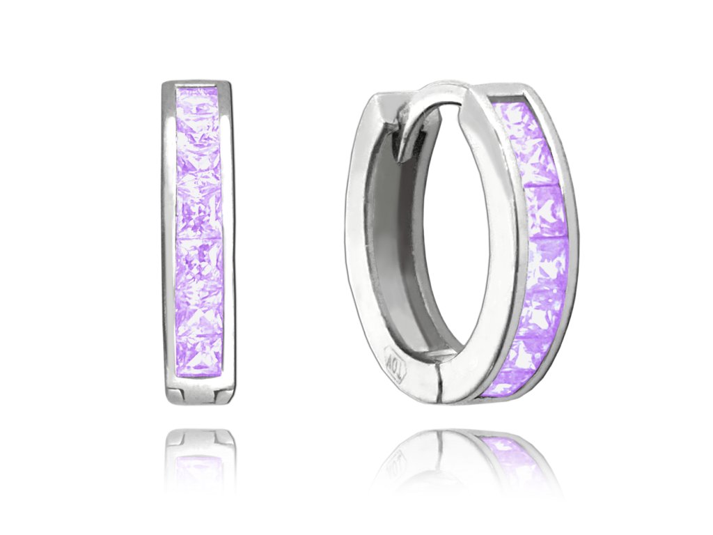 Světle fialové náušnice kroužky jsou díky praktickému zapínání a tvaru pohodlné pro každodenní nošení. Fialové zirkony se krásně třpytí a ozvláštníte jimi svůj outfit. Povrch stříbra je z rhodia, náušnice tedy neztratí svůj zářivý lesk a barvu.
